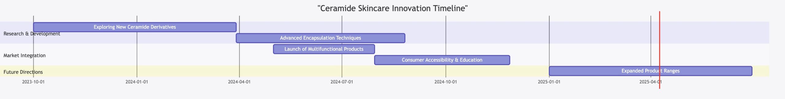The following mermaid timeline diagram outlines the key phases of innovation in ceramide skincare expected over the next few years: