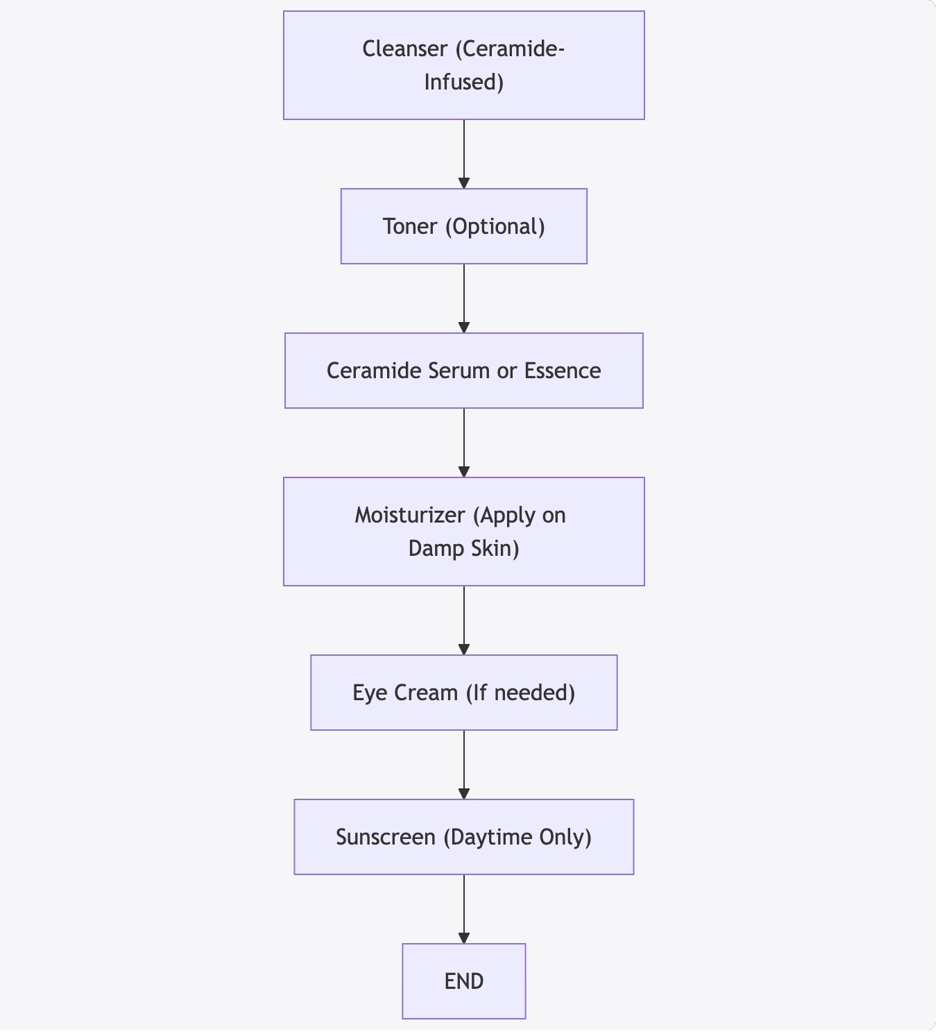 Below is a Mermaid flowchart that illustrates a basic skincare routine incorporating ceramide products: