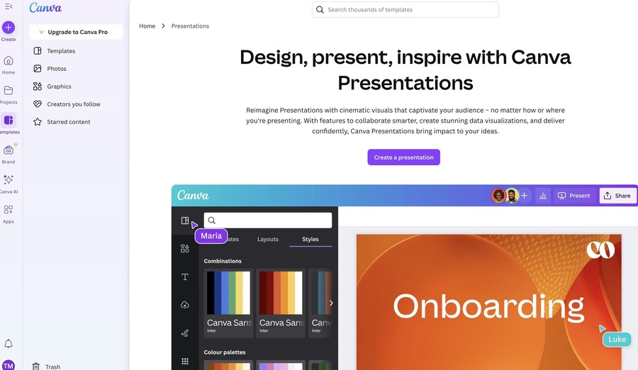 - Pitch: Tailored for modern business pitches with collaborative features and customizable templates, ideal for startups and corporate environments.