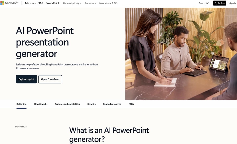 - Microsoft Copilot: Best for users already embedded in the Microsoft ecosystem, offering seamless AI assistance directly within PowerPoint.